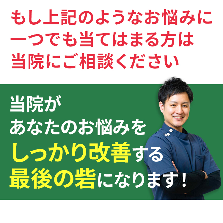 どこに行っても治らないお悩みは、 整体院オリーブにお任せください。